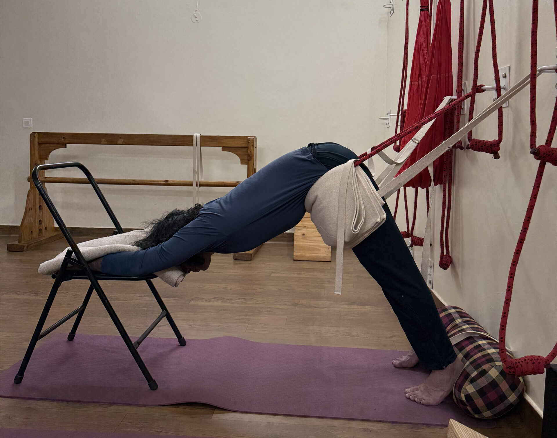 At YogAbhyasa, we use alignment–based yoga therapy to lengthen and strengthen the